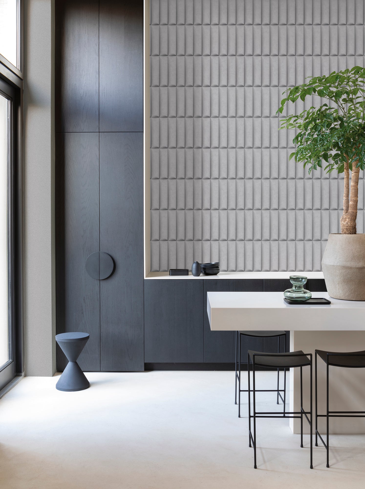 Enhance your interiors with this grey vertical 3D wallpaper, perfect for trendy living rooms, kitchens, or bedroom accent walls. This easy-to-apply wallpaper combines sleek modern design with textured sophistication, making it an ideal choice for contemporary or art deco-inspired decor.