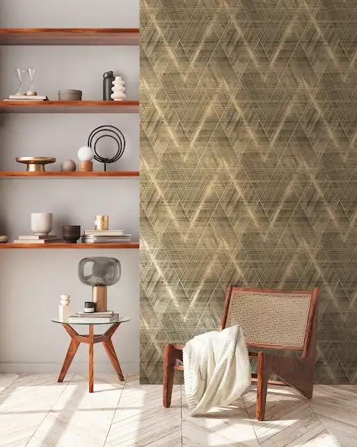 Elevate your space with this modern gold geometric wallpaper. Perfect for trendy wallpaper designs and creating a statement wall in your living room or bedroom. Easy to apply, this contemporary design adds depth and elegance to any room.