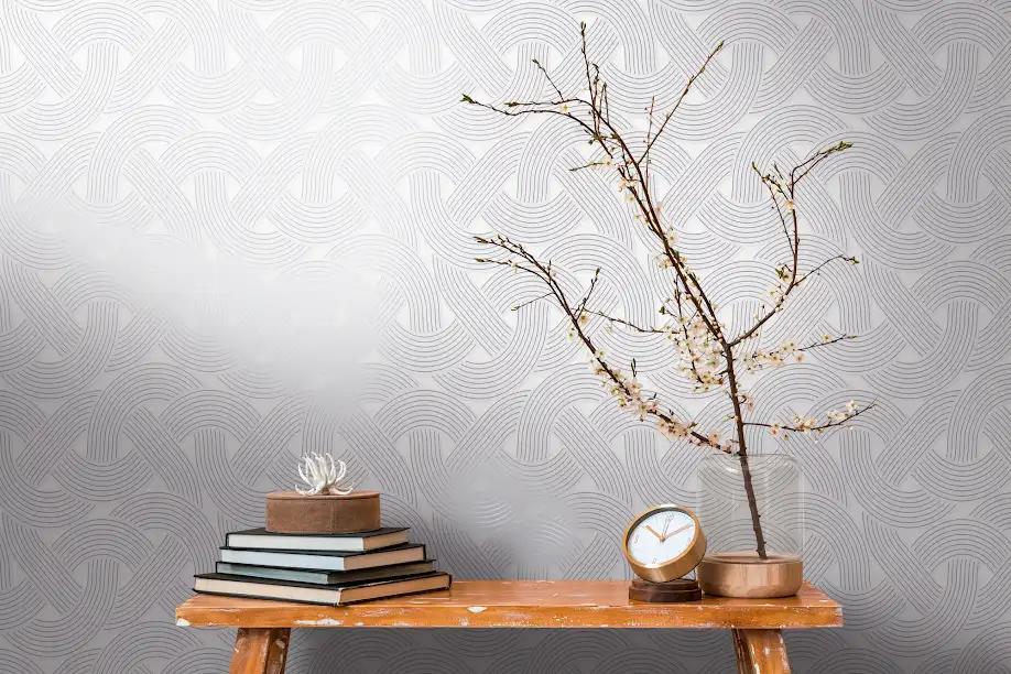 Add a touch of sophistication to your space with this white and grey geometric weave wallpaper. Featuring a unique overlapping pattern, this trendy design is perfect for living rooms, bedrooms, or accent walls, bringing modern elegance and texture to any room.
